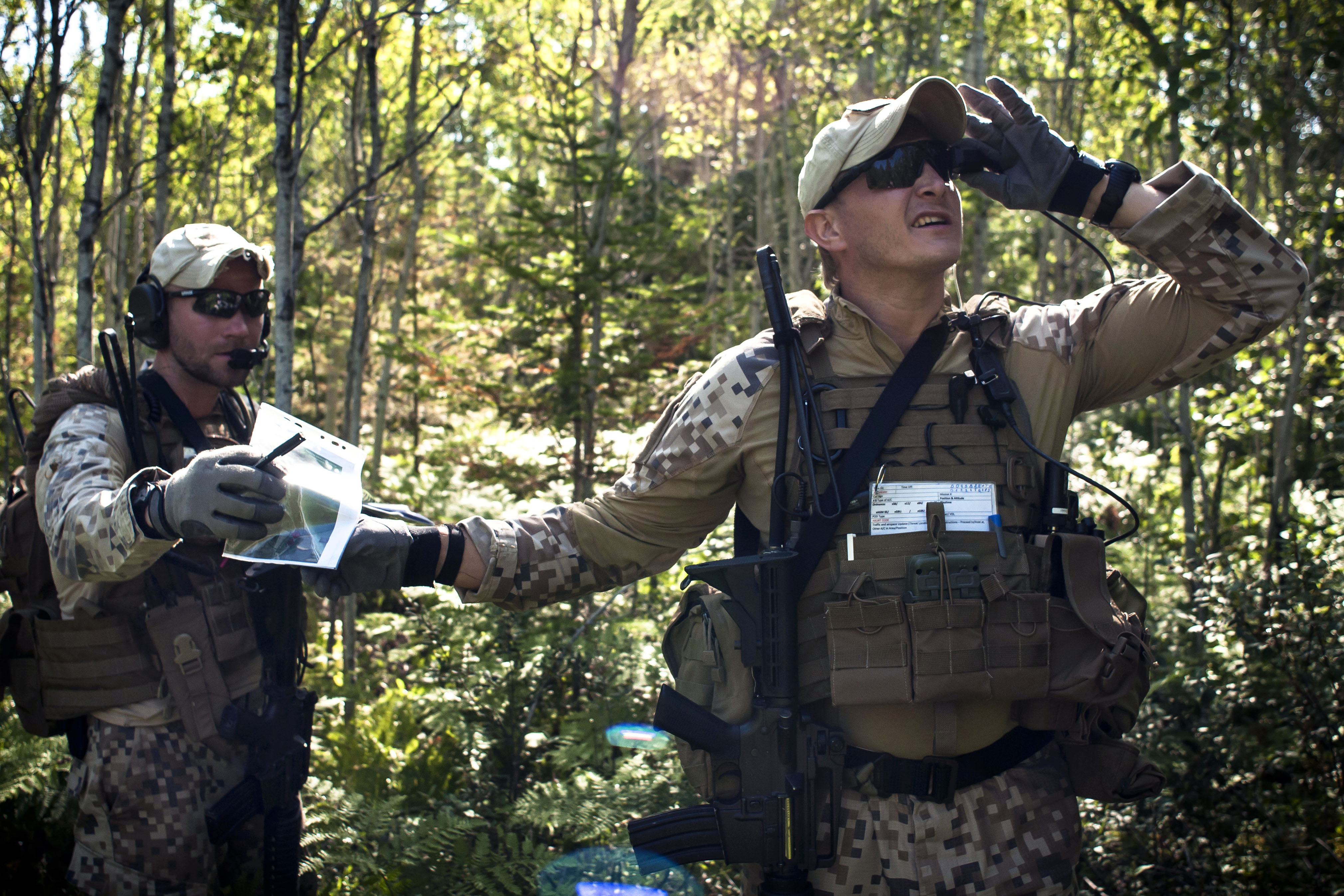 Latvian Sgt. Janis Savickis, right, looks through a remotely operated video-enhanced receiver as Latvian Capt. Armands Rutkis hands him a map during Operation Northern Strike 2014 near Rogers City, Mich., Aug. 5, 2014. Latvian Sgt. Janis Savickis, right, looks through a remotely operated video-enhanced receiver as Latvian Capt. Armands Rutkis hands him a map during Operation Northern Strike 2014 near Rogers City, Mich., Aug. 5, 2014. SHARE: Download: Full Size (2.02 MB) Tags: photo essays Credit: VIRIN: 505965-W-DYL18-718.jpg Photo Gallery