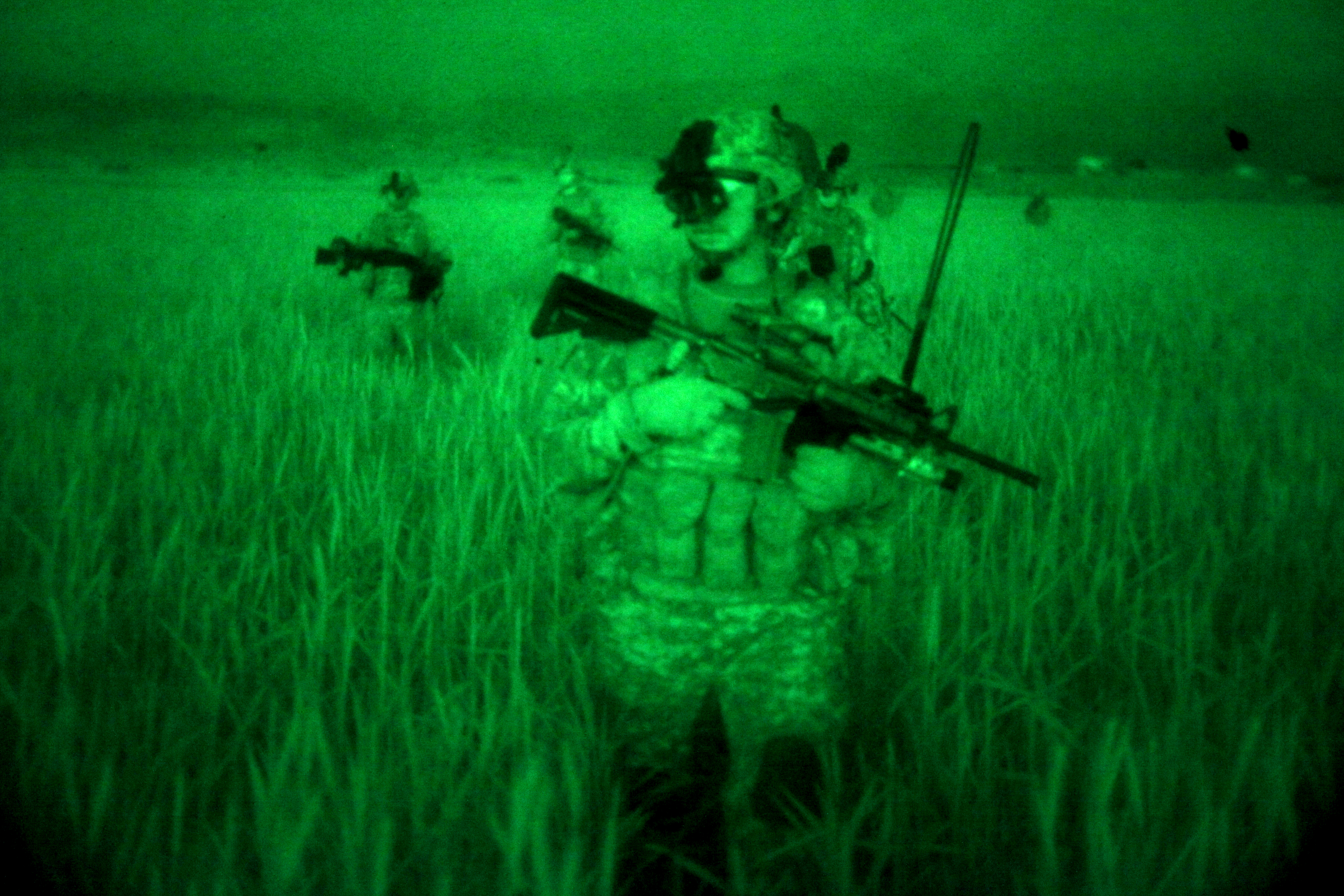 As seen through a night-vision device, U.S. Army soldiers move to an overwatch position in Sabari, Khowst province, Afghanistan, April 6, 2010. As seen through a night-vision device, U.S. Army soldiers move to an overwatch position in Sabari, Khowst province, Afghanistan, April 6, 2010. SHARE: Download: Full Size (13.63 MB) Tags: photo essays Credit: VIRIN: 071642-V-SJF50-033.jpg Photo Gallery