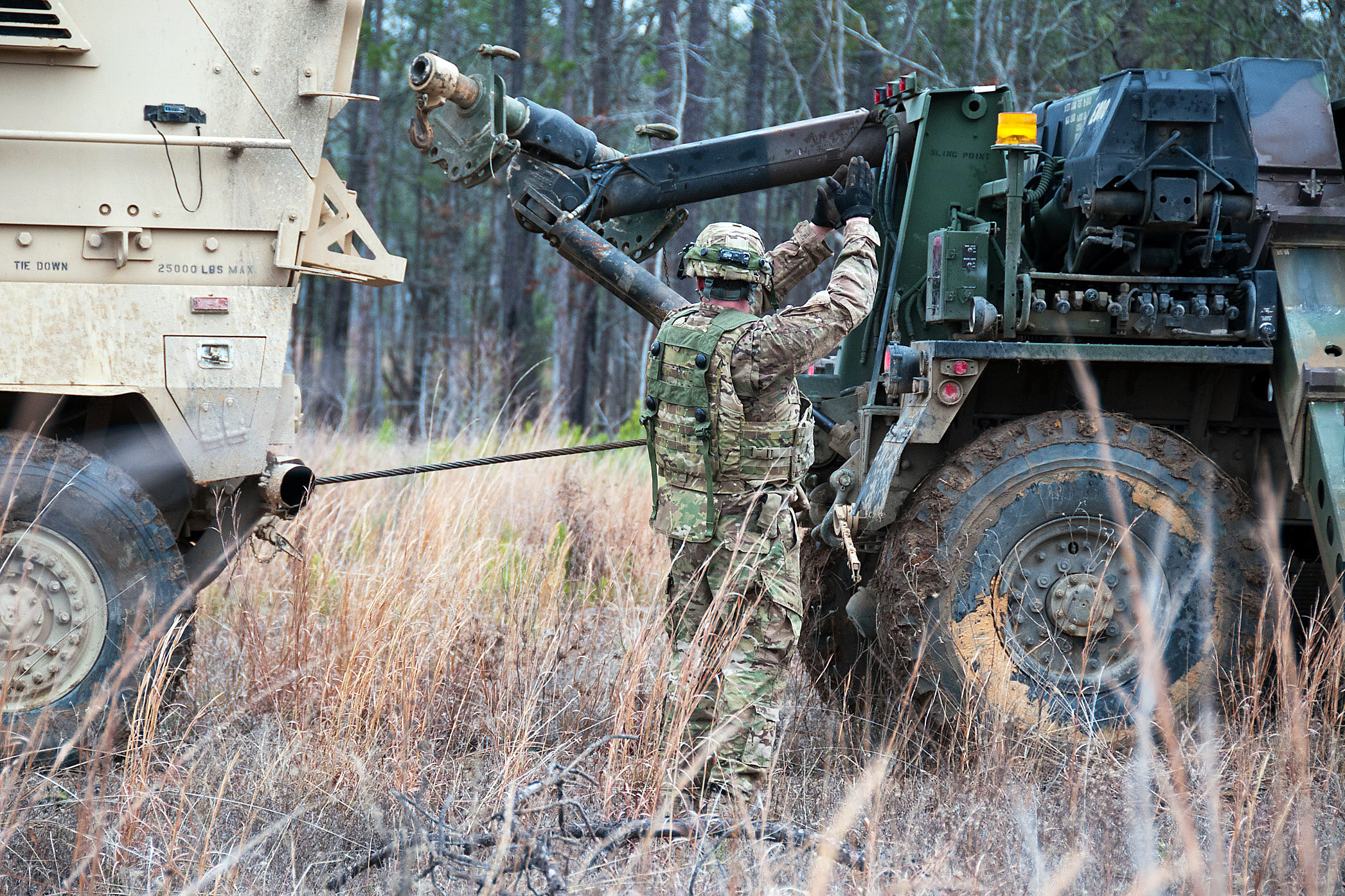 A paratrooper signals to a wrecker operator to stop as they pull a mine-resistant, ambush-protected vehicle from the mud at the Joint Readiness Training Center on Fort Polk, La., Jan. 25, 2012. A paratrooper signals to a wrecker operator to stop as they pull a mine-resistant, ambush-protected vehicle from the mud at the Joint Readiness Training Center on Fort Polk, La., Jan. 25, 2012. SHARE: Download: Full Size (1.59 MB) Tags: photo essays Credit: VIRIN: 130236-Y-BQD80-732.jpg Photo Gallery