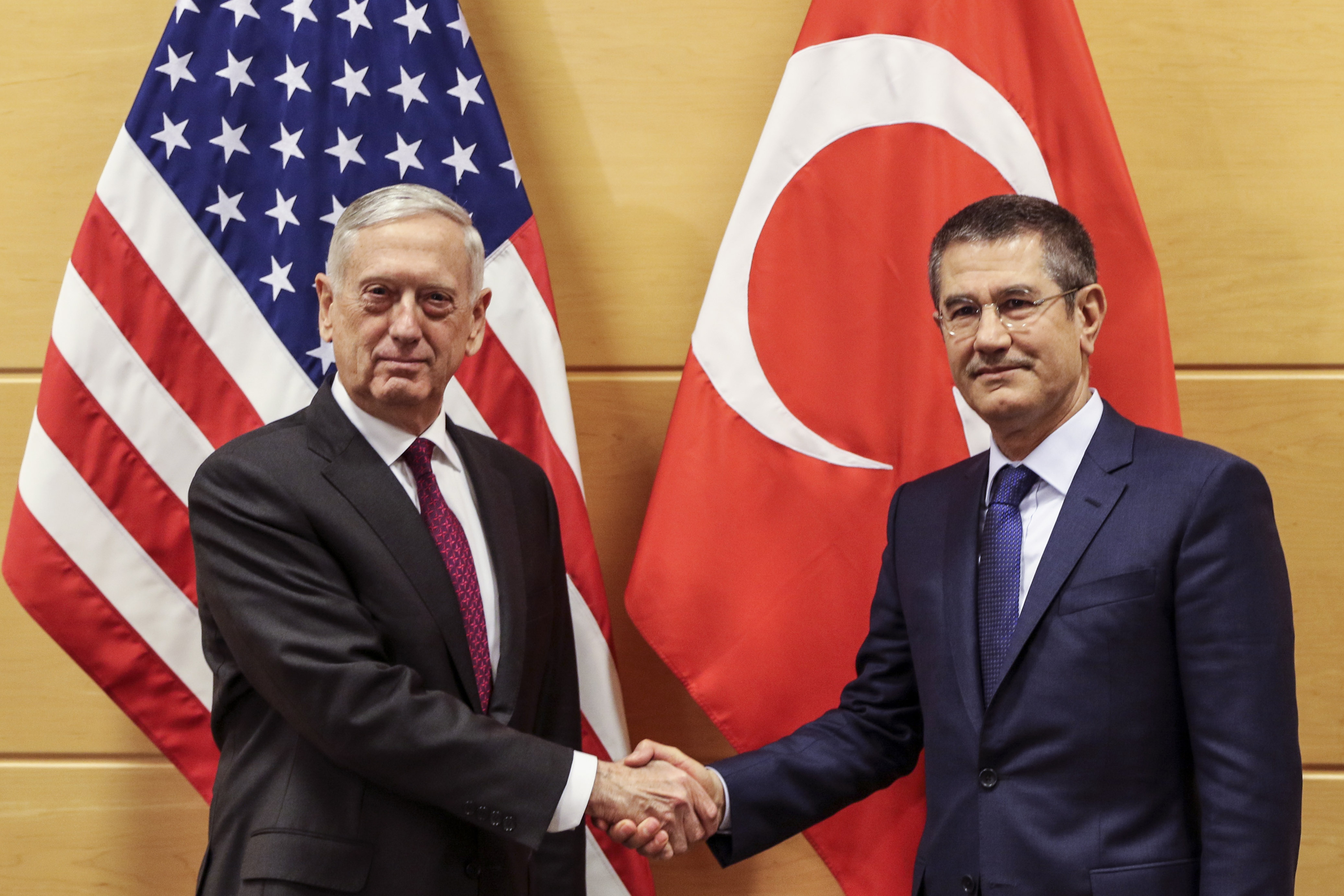 NATO Handshake Defense Secretary James N. Mattis stands for a photo with Turkish Defense Minister Nurettin Canikli before bilateral discussion at NATO headquarters in Brussels, Feb. 14, 2018. U.S. NATO photo SHARE: Download: Full Size (1.29 MB) Credit: U.S. Mission to NATO VIRIN: 180214-D-ZZ999-101Y.JPG Photo Gallery