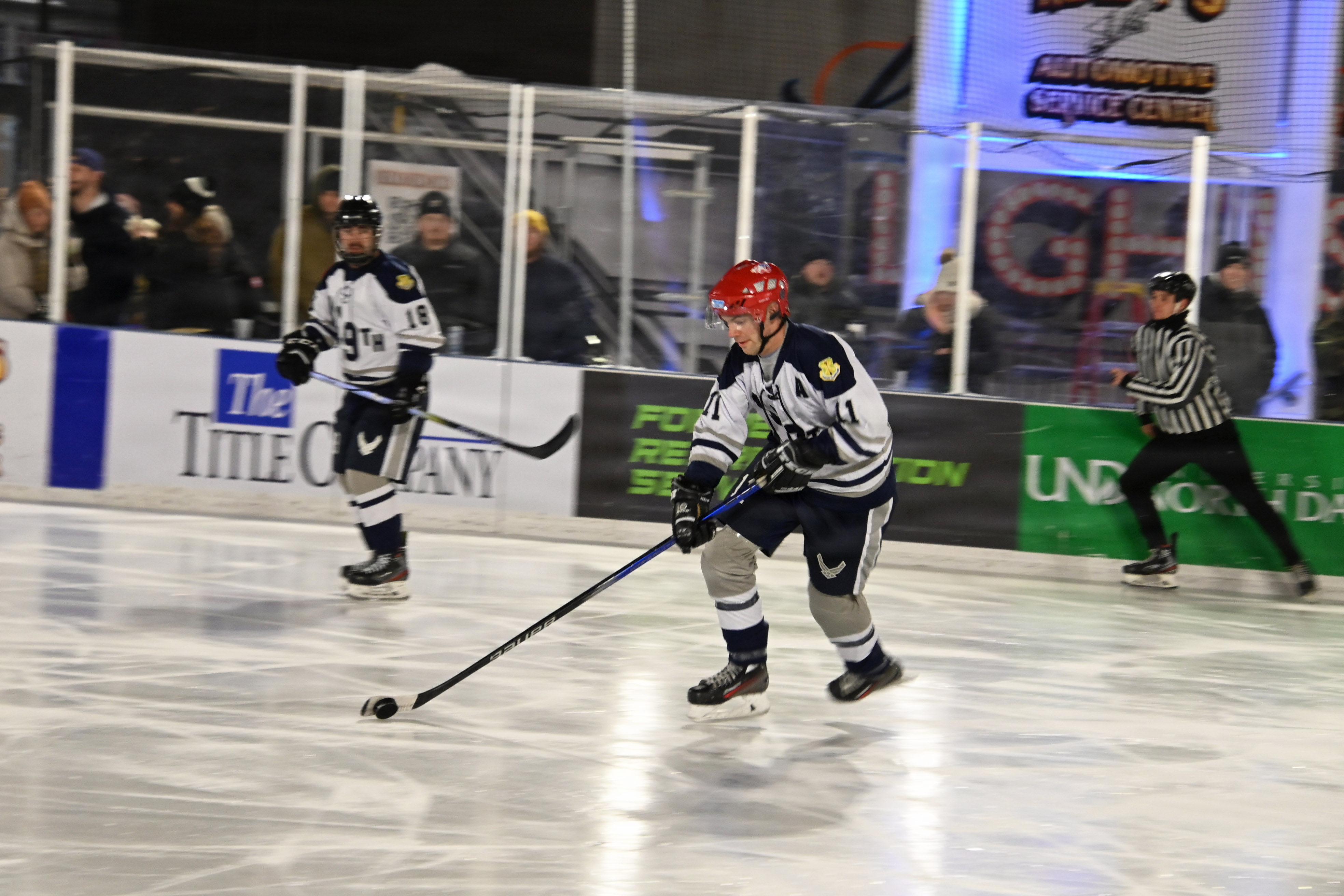 Serving & Scoring Air Force Master Sgt. Joe Paulus plays for the Happy Hooligan hockey team against the North Dakota Army National Guard team at a charity game in West Fargo, N.D., Jan. 2, 2026. SHARE: Download: Full Size (1.14 MB) Tags: sports, air force Credit: Michael Knodle, Air Force VIRIN: 260102-Z-YT106-1012M.JPG Photo Gallery