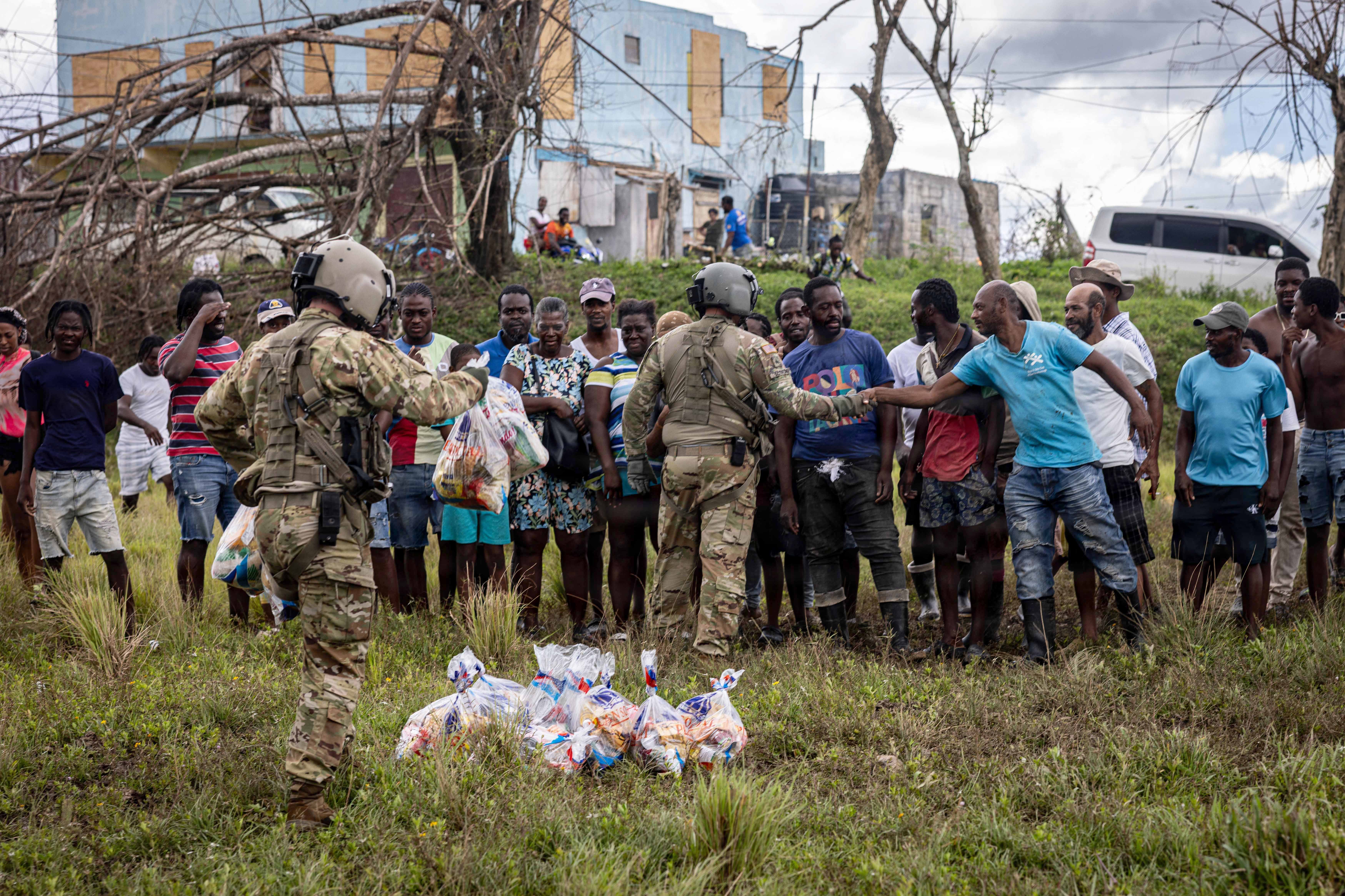 Helping Hands Service members assigned to Joint Task Force Bravo distribute food supplies in Amity, Jamaica, Nov. 9, 2025, to provide lifesaving assistance following Hurricane Melissa. SHARE: Download: Full Size (1.8 MB) Tags: Humanitarian, humanitarian aid, Southern Command, Hurricane Melissa Credit: Marine Corps VIRIN: 251109-M-VB488-1206M.JPG Photo Gallery
