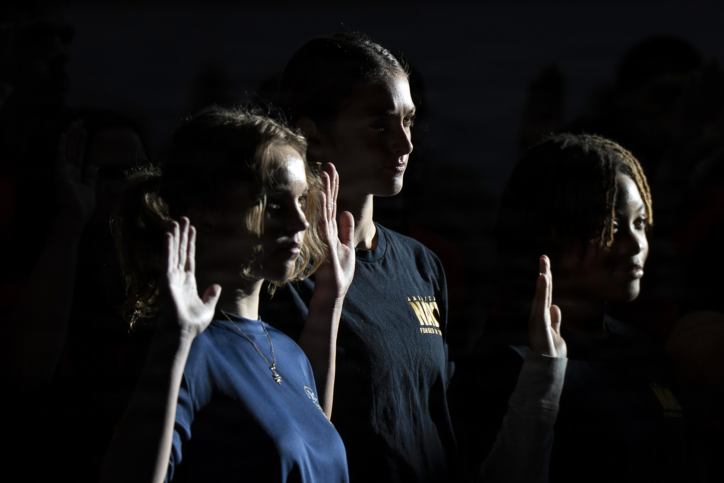 Choosing Service Future service members raise their right hands while Secretary of War Pete Hegseth administers the oath of enlistment to them at the Valiant Air Command Warbird Museum in Titusville, Fla., Feb. 2, 2026. SHARE: Download: Full Size (0.97 MB) Tags: Troops, Recruitment Credit: Navy Petty Officer 1st Class Alexander Kubitza, DOW VIRIN: 260202-D-PM193-1347R.JPG Photo Gallery