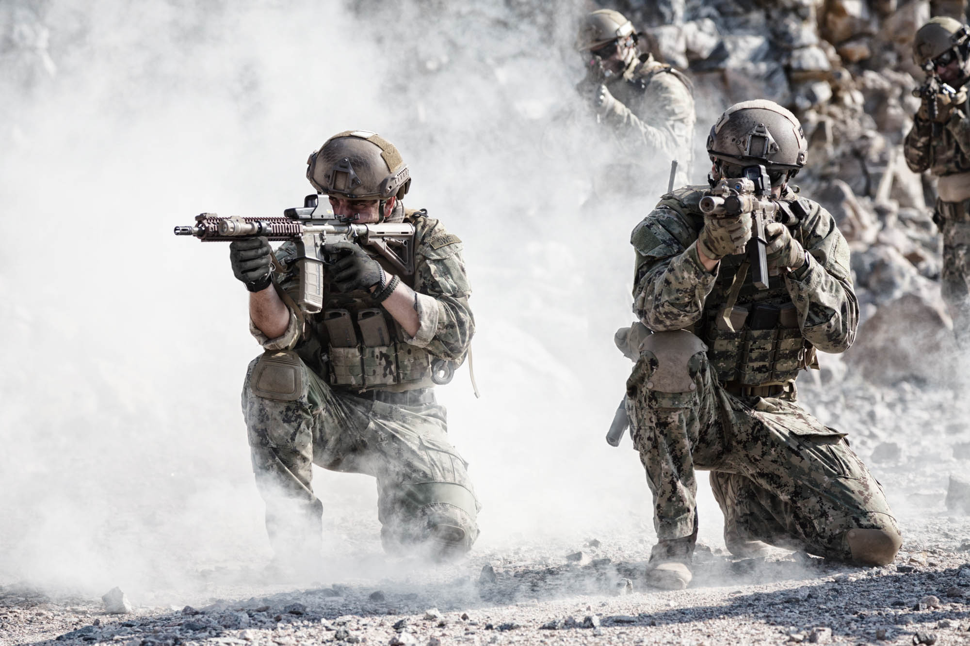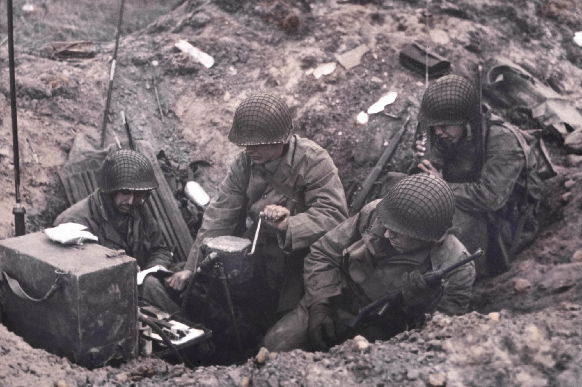 U.S. troops first used camouflage in WWII in the Pacific theater, not in Europe, because Germans wore it there. However, it wasn’t prevalent in the Pacific. The uniforms were reversible: A green color scheme for jungle and tan scheme for the beach. (Not pictured)