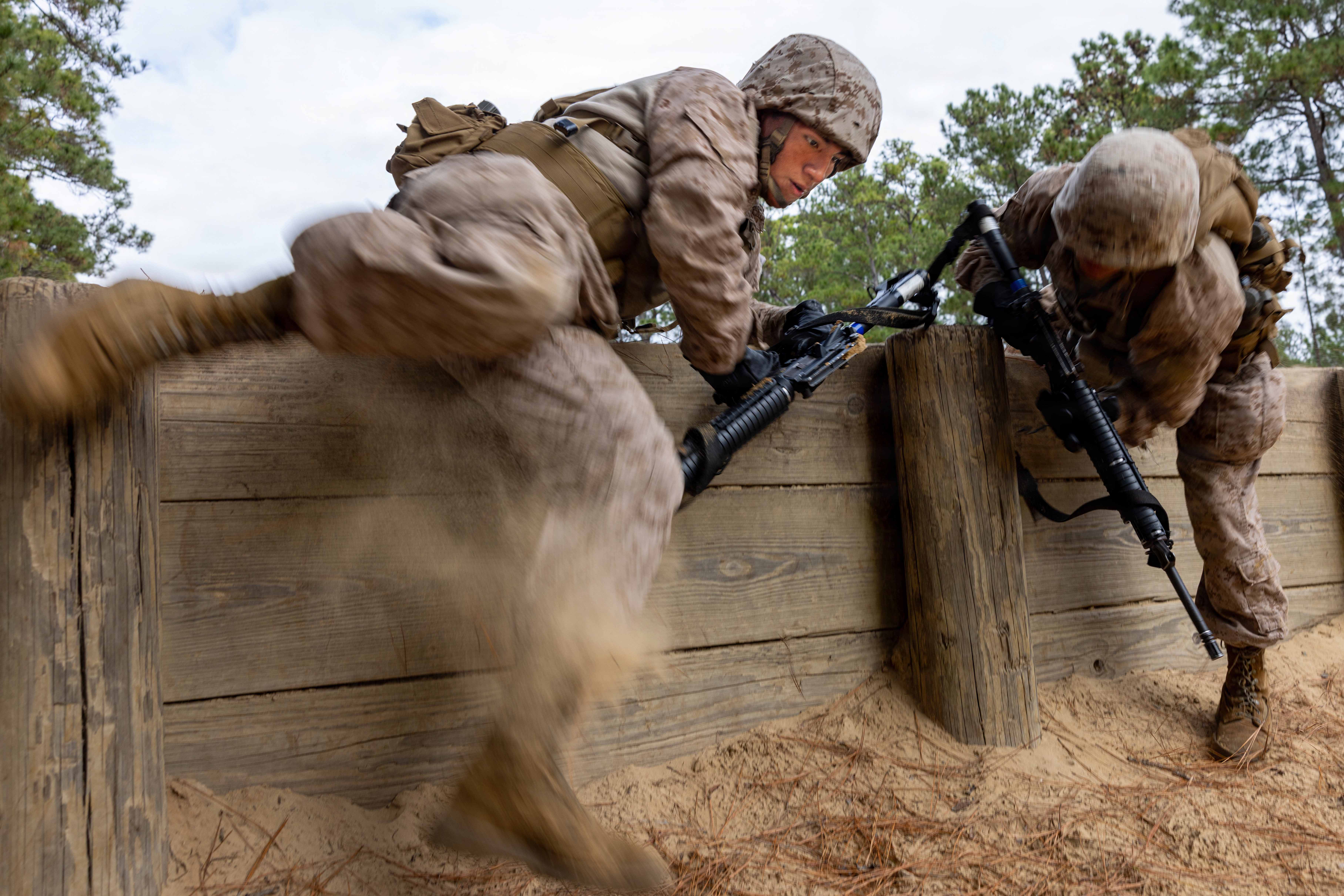 Making Marines Marine Corps recruits crawl over an obstacle during basic warrior training at Marine Corps Recruit Depot Parris Island, S.C., Dec. 17, 2025. The weeklong training event teaches recruits the basics of combat survival and rifle maneuvers. SHARE: Download: Full Size (1.19 MB) Tags: training, marine corps Credit: Marine Corps Lance Cpl. Jaden Beardsley VIRIN: 251217-M-BA951-1003M.JPG Photo Gallery
